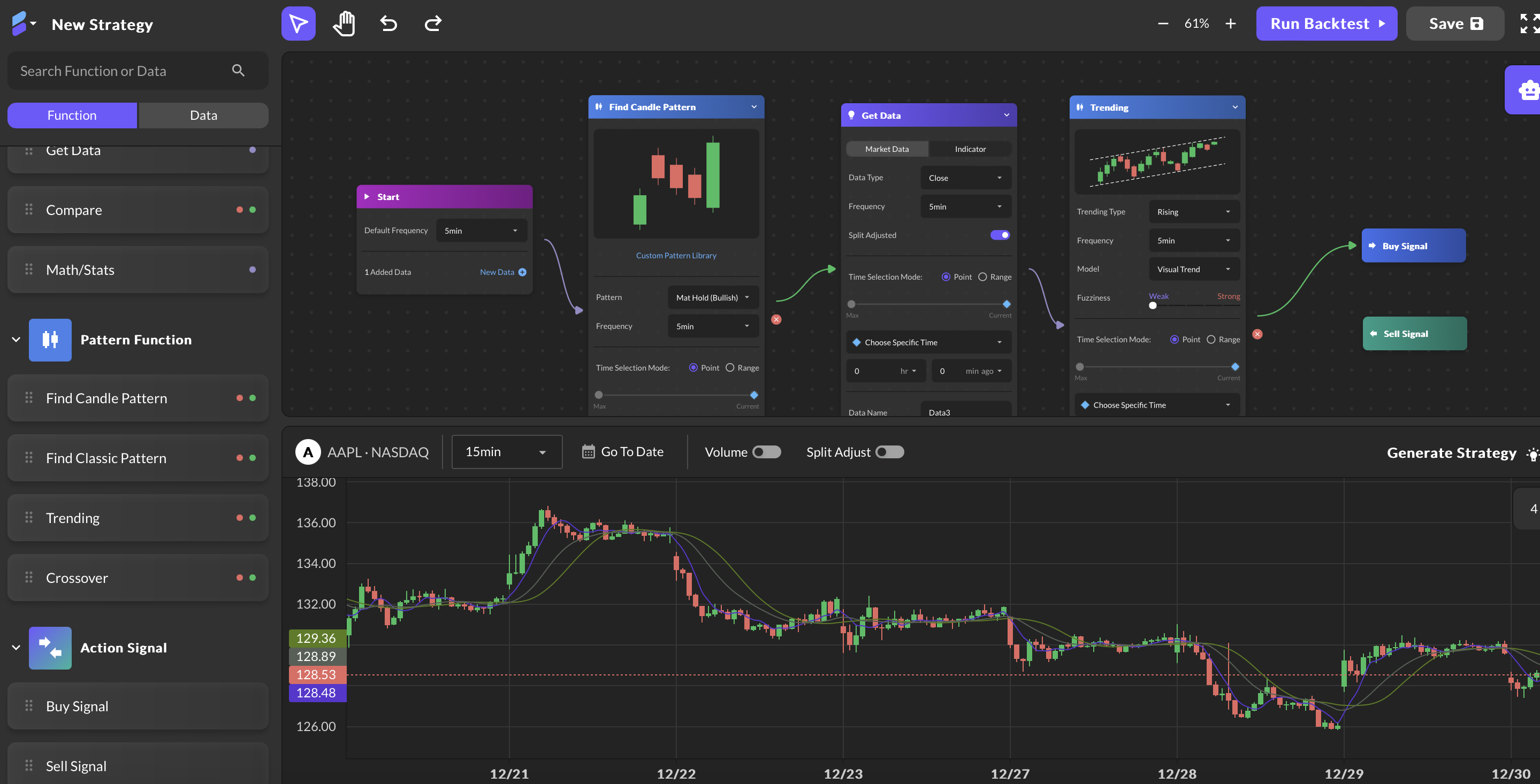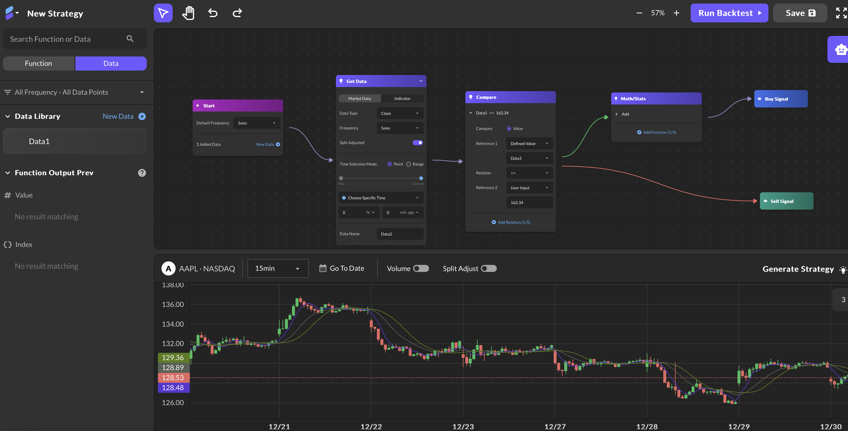Craft your strategy by customizing functions to suit your trading needs.