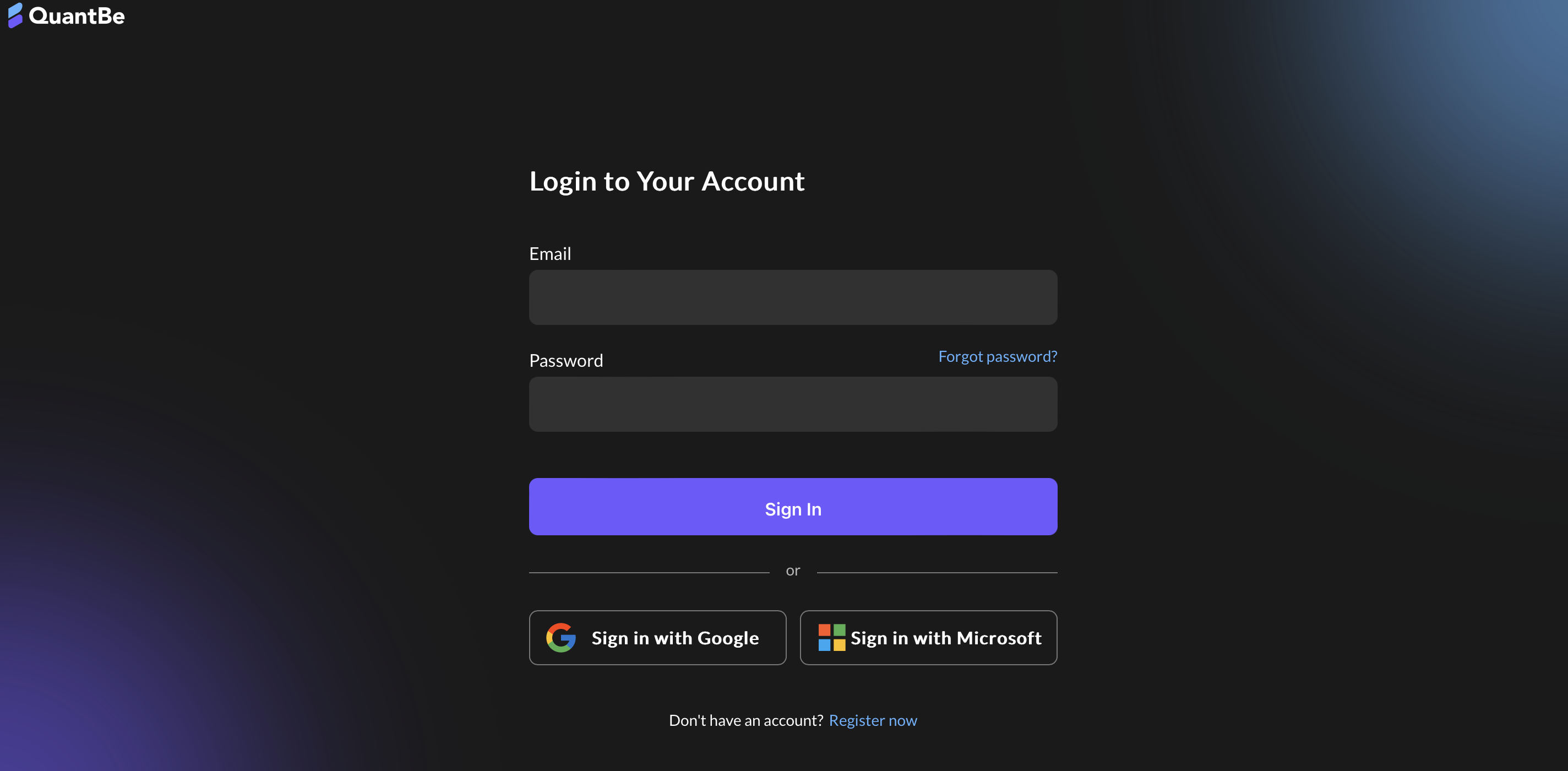 Create your Quantbe account to get started in just a few clicks.